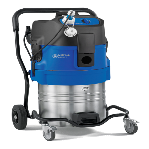 ATTIX 7 Vattensugare är utrustad med en 70 liters behållare och automatisk tömningspump, som gör att du kan arbeta mycket lång tid utan att tömma behållaren.