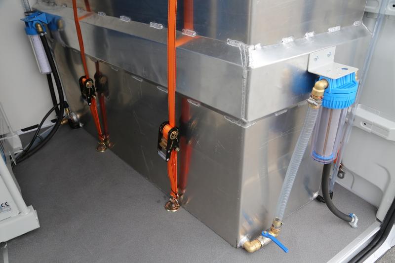 Måttanpassade vattentankar, fjärrkontroller samt ergonomisk utrustning för slanghantering.